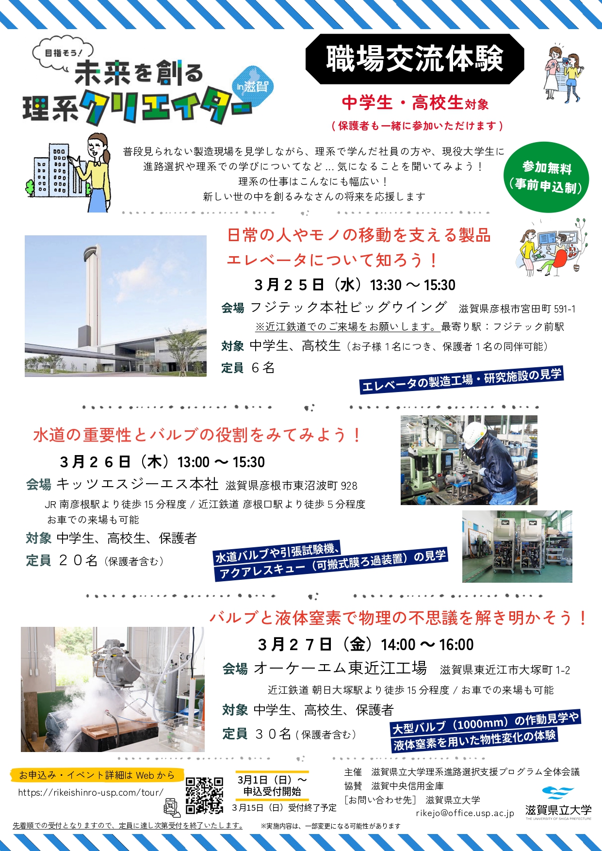 2026年3月27日(金)に「目指そう!未来を創る理系クリエイターin滋賀」に参加し、職場交流体験を実施します。